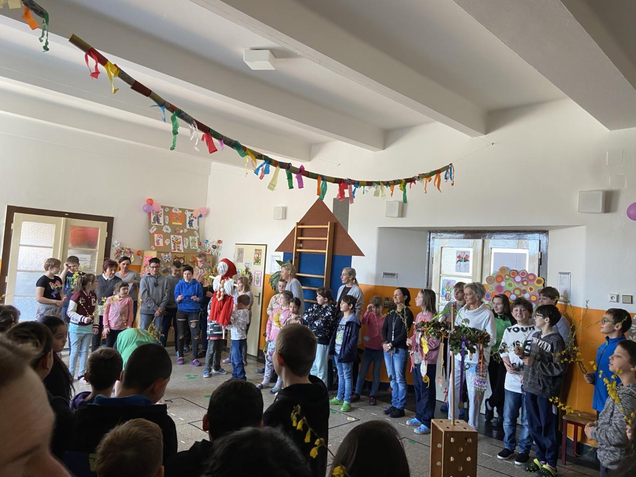 Tradiční loučení se zimou proběhlo 20. 3. 2024 v budově školy a následoval průvod v čele s Mořenou až ke Klenici do lesoparku Štěpánka. Tam jsme zimu poslali po vodě a do školy se vrátili s pěkně nazdobeným májíčkem.